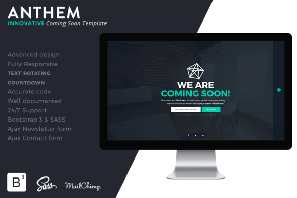 ANTHEM is an Innovative Coming Soon, clean and elegant for every creative people, corporates, agency, e-commerce, business, portfolio etc…