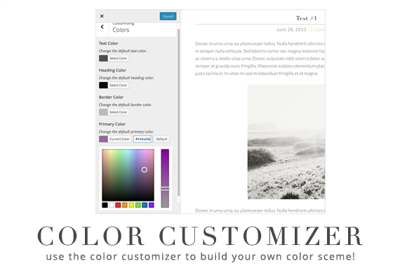 - Text-based header (edit your site title from your Wordpress Dashboard) with optional tagline or add your own image logo