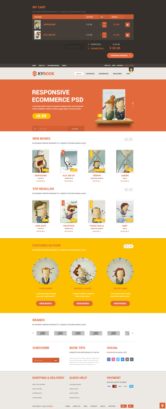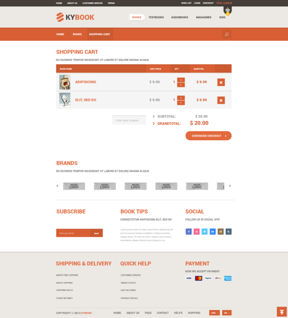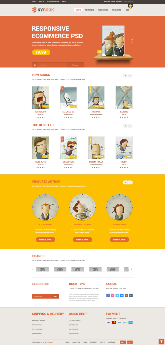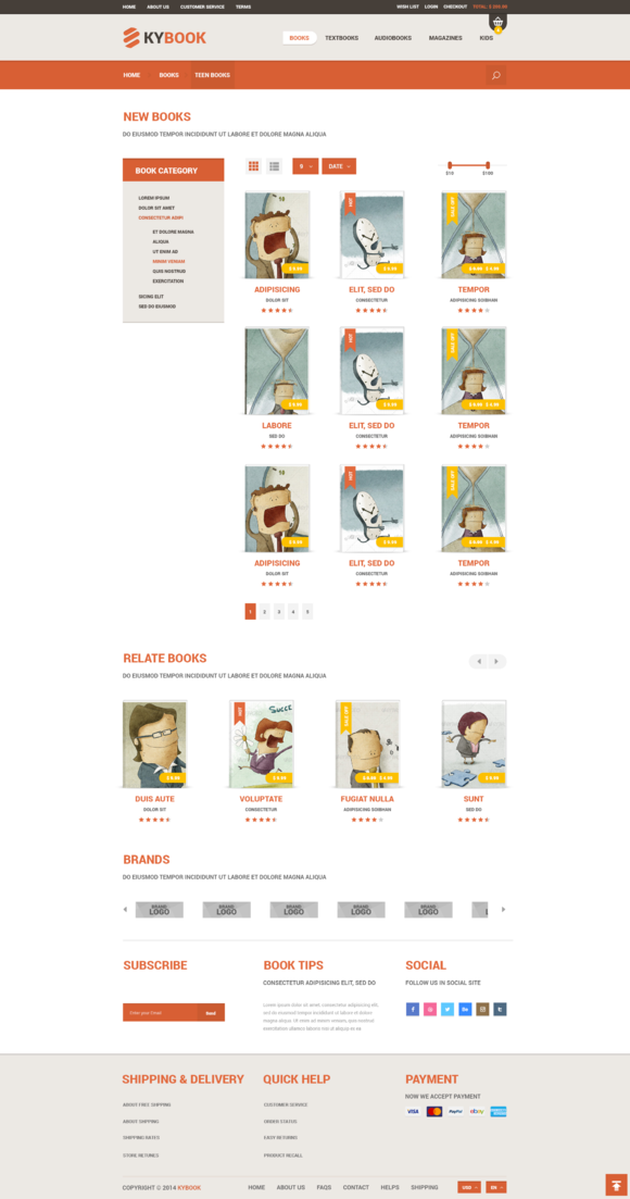 Live Preview →Kybook – is an extremely powerful and flexible premium magento theme with responsive & retina ready design. This theme is perfect for any type of book store and comes with lots of awesome features, such as: ajax price slider, custom grid modes, revolution slider, quick install package and etc. Simply check features list below.