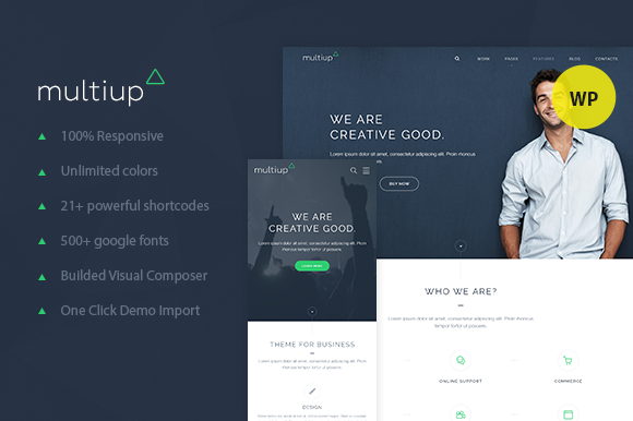 MultiUp – Multi-Purpose WordPress Theme is a clean, flexible and fully responsive theme perfect for any Corporate, Business, Personal, Agency, Photo Studio, Freelancers, Portfolio, Blog, Events and more. It includes POWERFUL drag and drop page Builder using Visual Composer and AWESOME revolution slider. Create an Awesome website today using MultiUp Multi-Purpose WordPress Theme