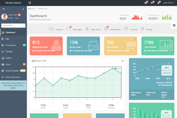 Perfect Admin is a fully responsive admin template built with Bootstrap 3.0 Framework, modern web technology HTML5 and CSS3.