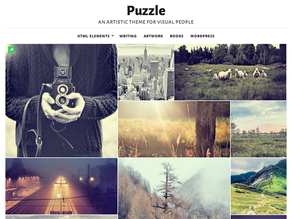 While Puzzle was designed to allow artists and photographers to showcase their work, it’s equally suitable for bloggers, scrapbookers, and writers who want to add a bit of visual flair to their site.