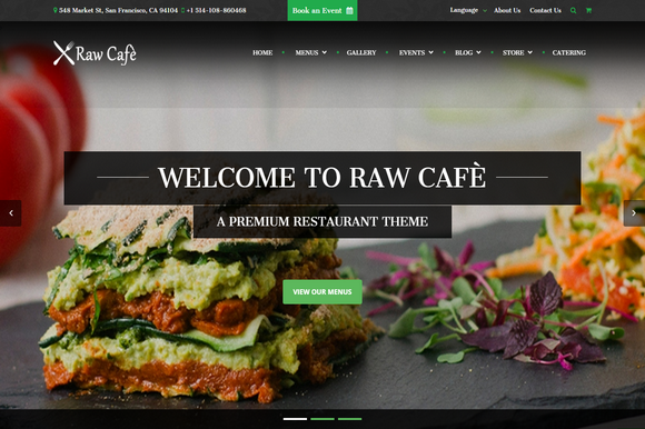 Raw Cafè is designed with framework Bootstrap 3.3.6. A powerful restaurant theme for restaurants, bars and catering companies. This theme features many practical elements such as a catering and event form, photo gallery, events system, blog system and a menu system.