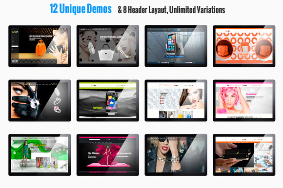In the 12 demos that come in the theme you can see how it works with Fashion stores, jewelry shops, shoe shops, accessories stores, furniture stores, technology shops.