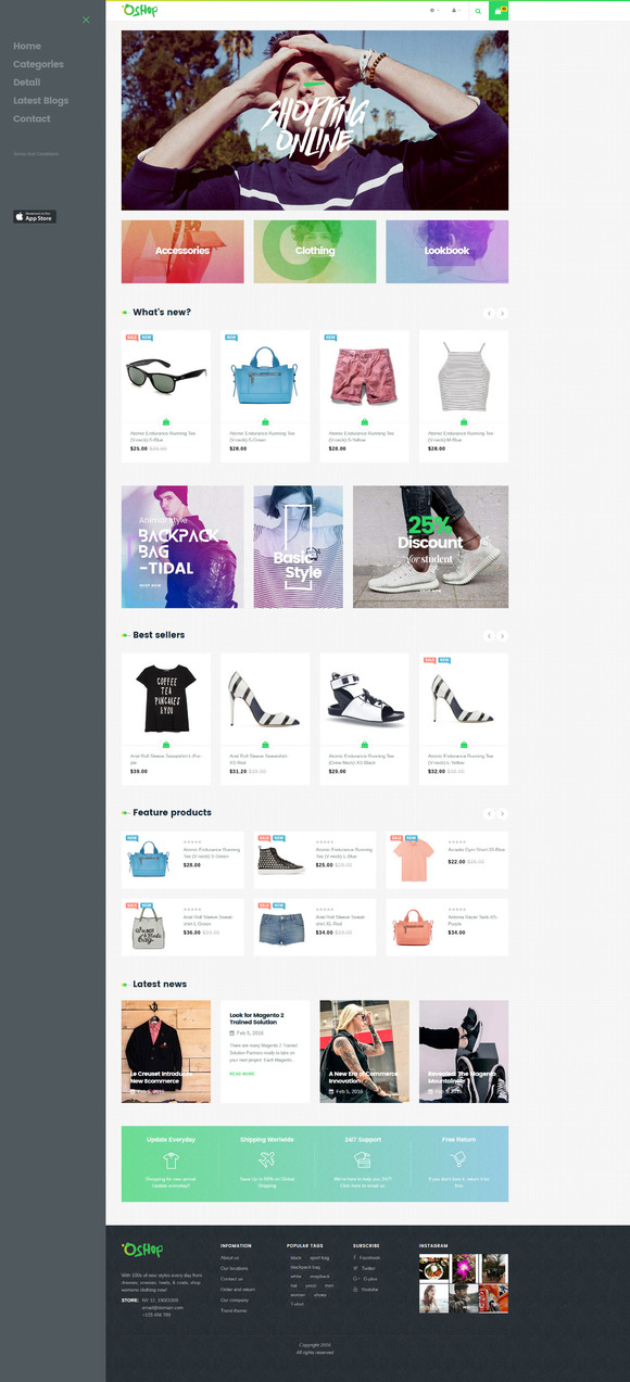 This magento 2 new theme is built with Bootstrap 3.x; hence, your site will be displayed responsively on any kind of devices.