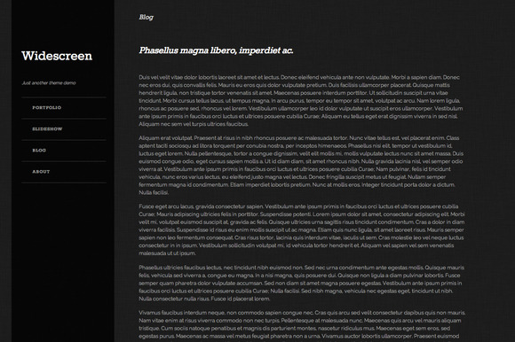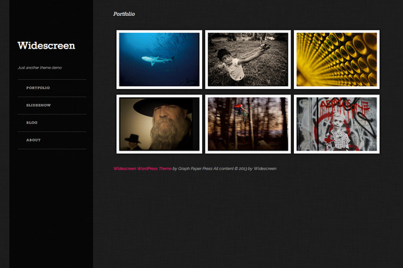 Widescreen is a photography theme for WordPress that features a full-width responsive slideshow. This theme includes page templates to
