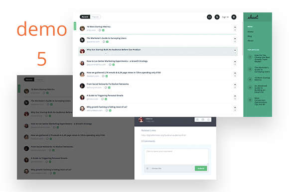 - Xhunt Dashboard for users - add items, activities, notifications, private messages, profiles, collections, follow/unfollow, settings